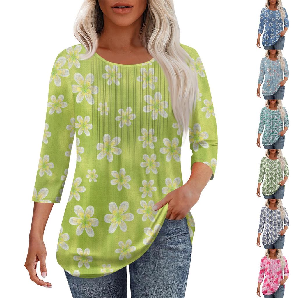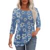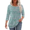 Damska Modna Codzienna Plisowana Koszulka Top z Okrągłym Dekoltem i Rękawami Siedem Ósmych
