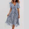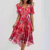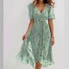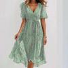 V-neck Floral Print Summer Dress with Short Sleeves and Waist Tie in Green/Pink/Multi-color Options
