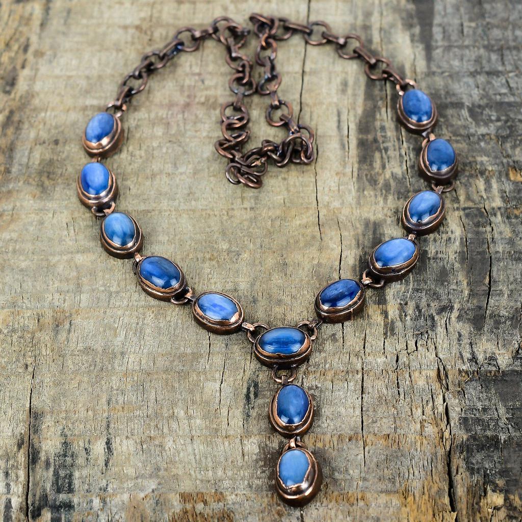 Naszyjnik z kyanitem naszyjnik z miedzi elektroformowanej naszyjnik z regulowanym łańcuszkiem biżuteria z kyanitem ręcznie robiony nowy naszyjnik prezenty dla żony