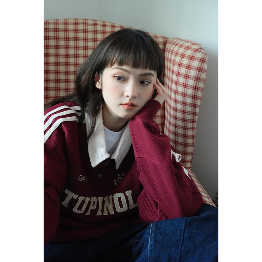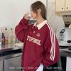 Women's Striped Polo Collar Sweatshirt - Korean Style with American Letter Embroidery