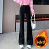 Discover the perfect blend of style and comfort with these high-waist corduroy flared pants, designed for the 2024 autumn/winter season. Crafted from durable polyester, these pants boast a casual Korean style that seamlessly integrates into any wardrobe. The high waistline accentuates your silhouette, while the plus velvet chenille lining provides extra warmth and a luxurious feel. These thickened, slimming pants are ideal for both everyday casual wear and more refined occasions, ensuring you stay chic and cozy throughout the colder months.