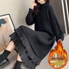 Gruba sukienka wełniana z podszewką z polaru: Wyszczuplający, Luźny, Styl Jesienno-Zimowy, Idealny do Płaszczy, Dzianinowy Wzór Koronkowy.