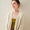 Damski gruby kaszmirowy sweter kardigan z dekoltem w serek na Jesień/Zimę 2024, luźny krój, dziergany top z opuszczonymi ramionami