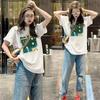 Ciesz się komfortem naszej damskiej koszulki z czystej bawełny o luźnym kroju, zaprojektowanej na relaksujący letni klimat.. Ten t-shirt, wykonany z wysokiej jakości bawełny, ma korzystny okrągły dekolt i krótkie rękawy, idealne na ciepłą pogodę.. Proste ramiona zapewniają stylową sylwetkę, a przyciągający wzrok nadruk dodaje odrobinę osobowości Twojemu swobodnemu strojowi.. Idealny na każdą nieformalną okazję, ten t-shirt łączy styl i wygodę, co czyni go niezbędnym elementem Twojej letniej garderoby.