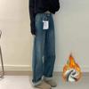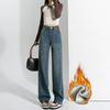 Discover the perfect blend of comfort and style with these Women's Plus Size Velvet-Lined Wide-Leg Jeans. Designed for the autumn and winter seasons, these jeans offer a loose fit with a slimming effect. Made from high-quality denim material, they feature a high waistline for added comfort and support. The pants are elegantly draped with a straight-leg cut and stylishly adorned with sequins, making them a fashionable addition to your wardrobe.