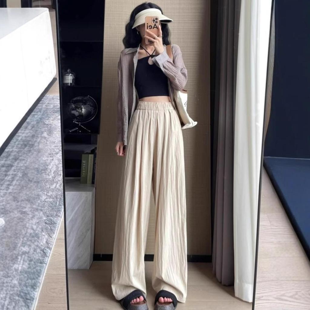 Introducing our high-waist wide-leg summer pants for women, crafted from soft and stretchy spandex for ultimate comfort and mobility. These pants feature a breathable ice silk fabric, perfect for keeping cool during warmer months. With their sportive style, they effortlessly blend fashion with functionality, making them ideal for casual outings or relaxed sports activities. Enjoy a chic and airy feel all summer long with these versatile pants.