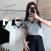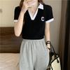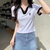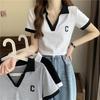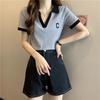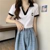Plus Size Women's V-Neck Polo T-Shirt - Short Sleeve, Straight Shoulder, Slimming & Tummy-Covering for Summer 2025.