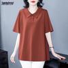 Poczuj komfort i styl w tej damskiej koszulce polo plus size o luźnym kroju, idealnej na sezon letni.. Wykonany z wysokiej jakości bawełny, t-shirt zapewnia oddychalność i miękkość, zapewniając chłód i komfort przez cały dzień.. Ten wszechstronny element garderoby, charakteryzujący się klasycznym dekoltem w serek i krótkim rękawem, można nosić samodzielnie lub warstwowo pod innymi ubraniami, aby uzyskać szykowny wygląd.. Idealna na co dzień lub do relaksu w domu, ta podkoszulka jest podstawowym dodatkiem do Twojej garderoby.