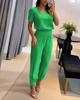 Odkryj swobodny styl dzięki temu szykownemu zestawowi kombinezonu z nadrukiem w dekolt V, z krótkim rękawem i długimi spodniami, idealnemu na swobodny, ale modny wygląd.. Wykonany z wysokiej jakości poliestru, ten sportowy strój zapewnia zarówno komfort, jak i trwałość, co czyni go idealnym wyborem na codzienne wyjścia lub swobodne spotkania towarzyskie.. Współczesny design i uderzający nadruk dodają odrobinę polotu, pozwalając z łatwością wyrazić Twój unikalny zmysł stylu.