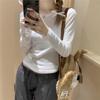 Lace Faux Two-Piece Long-Sleeve T-Shirt for Women - 2025 Spring Slim Style with Bow Detail