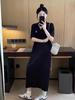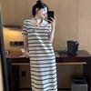 2024 Summer Striped Ice Silk Knit Polo Dress – Loose & Fashionable Design