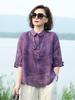 Damski letni T-shirt z klapami z jedwabiu i lnu: Krótki rękaw, Chłodny, Modny, Cienki pulower