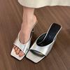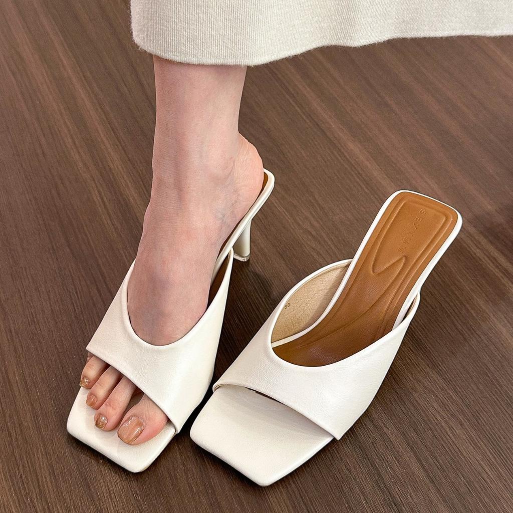 Francuskie retro beżowe kwadratowy nosek wysoki obcas chłodzące klapki damskie letnie nowe cienki obcas chłodzące klapki