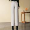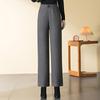 Podkreśl swoją sezonową garderobę tymi spodniami z wysokim stanem z mieszanki wełny o prostych nogawkach, zaprojektowanymi specjalnie na chłodniejsze miesiące jesieni i zimy 2024. Wykonane z pogrubionego materiału, te spodnie oferują zarówno ciepło, jak i styl, zapewniając komfort w chłodniejszym klimacie.. Wysoka talia podkreśla Twoją sylwetkę, a sportowy design dodaje współczesnego charakteru odpowiedniego na różne okazje.. Dzięki swojej długości dziewięciu punktów, te spodnie przyjazne dla niskich sylwetek są idealne do stworzenia szykownego, opływowego wyglądu z Twoim ulubionym obuwiem.. Doświadcz idealnego połączenia funkcjonalności i mody dzięki tym wszechstronnym niezbędnikom zimowym.