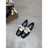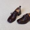 Second hair! Retro literary square head small leather shoes, high-end thick heel front lace-up, ballet versatile single shoes for women