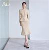 Wejdź w elegancję dzięki temu khaki jesiennemu damskiemu garniturowi sukienki typu rybka, idealnemu dla nowoczesnej profesjonalistki.. Zaprojektowany w dopasowanym kroju slim fit i w stylu OL, ten garnitur emanuje wyrafinowaniem i pewnością siebie.. Wykonana z wysokiej jakości wiskozy, zapewnia luksusowe odczucie i gładki układ, zapewniając komfort przez cały Twój pracowity dzień.. Detale z włókna wiskozowego dodają odrobinę finezji, czyniąc go idealnym wyborem na każdą okazję biznesową lub formalną.