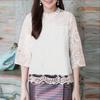 ZANZEA Damska letnia codzienna bluzka z rękawem 3/4, z haftowanym koronkowym patchworkiem