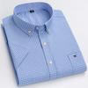 Męska Wiosenno-Letnia Koszula Oxford z Krótkim Rękawem 100% Bawełna z Kieszenią, Kraciasta Casualowa Lekka Oddychająca Trwała Koszula Gingham
