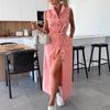 Damska codzienna i modna sukienka dżinsowa bez rękawów, dopasowana w talii, zapinana na jeden guzik