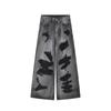 Amerykański styl Stary Ruffian Przystojny Szerokie nogawki Dżinsy z dziurami Street Luźne Proste Spodnie Męskie