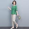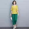 Elevate your summer wardrobe with this chic cotton linen two-piece suit, designed specifically for middle-aged women. The set features a solid pattern and offers a relaxed, casual style that's perfect for staying comfortable in warm weather. Made from high-quality cotton, this ensemble ensures breathability and ease of movement. The short sleeves add to its summery vibe, while the convenient pockets provide functionality and a touch of practicality. Ideal for effortlessly stylish days spent at casual gatherings or leisurely outings.