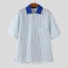 INCERUN Men Short Sleeve Shirts Lapel Stitching Striped Loose Shirts