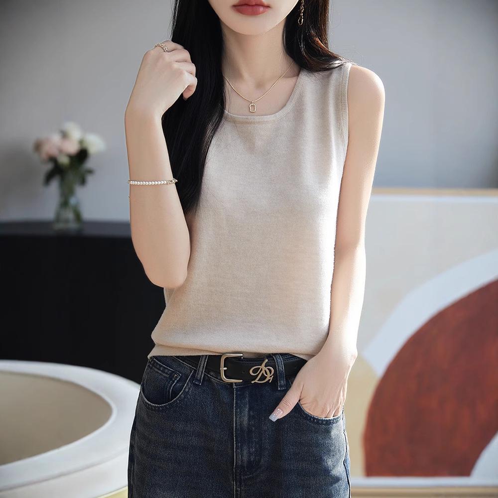 Women's Slim Fit Knitted Wool Vest - Soft Sleeveless Crew Neck for Spring & Autumn Layering