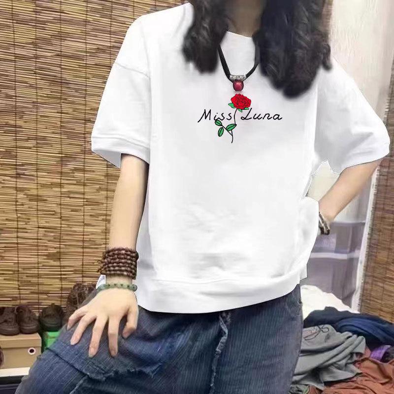 Discover ultimate comfort and style with this Women's 100% Cotton Casual Half-Sleeve Loose-Fit T-Shirt. Crafted entirely from soft, breathable cotton, this t-shirt offers a relaxed fit that's perfect for everyday wear. The short sleeves and round neckline provide classic, effortless style, while trendy patchwork and quilted decorations add a fashionable flair. Ideal for pairing with your favorite jeans or leggings, this tee is a versatile addition to any modern wardrobe.