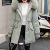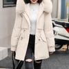 Damska Moda Casual Jednolity Kolor z Kapturem Pluszowy Płaszcz Bawełniany Średniej Długości z Długim Rękawem Kurtka