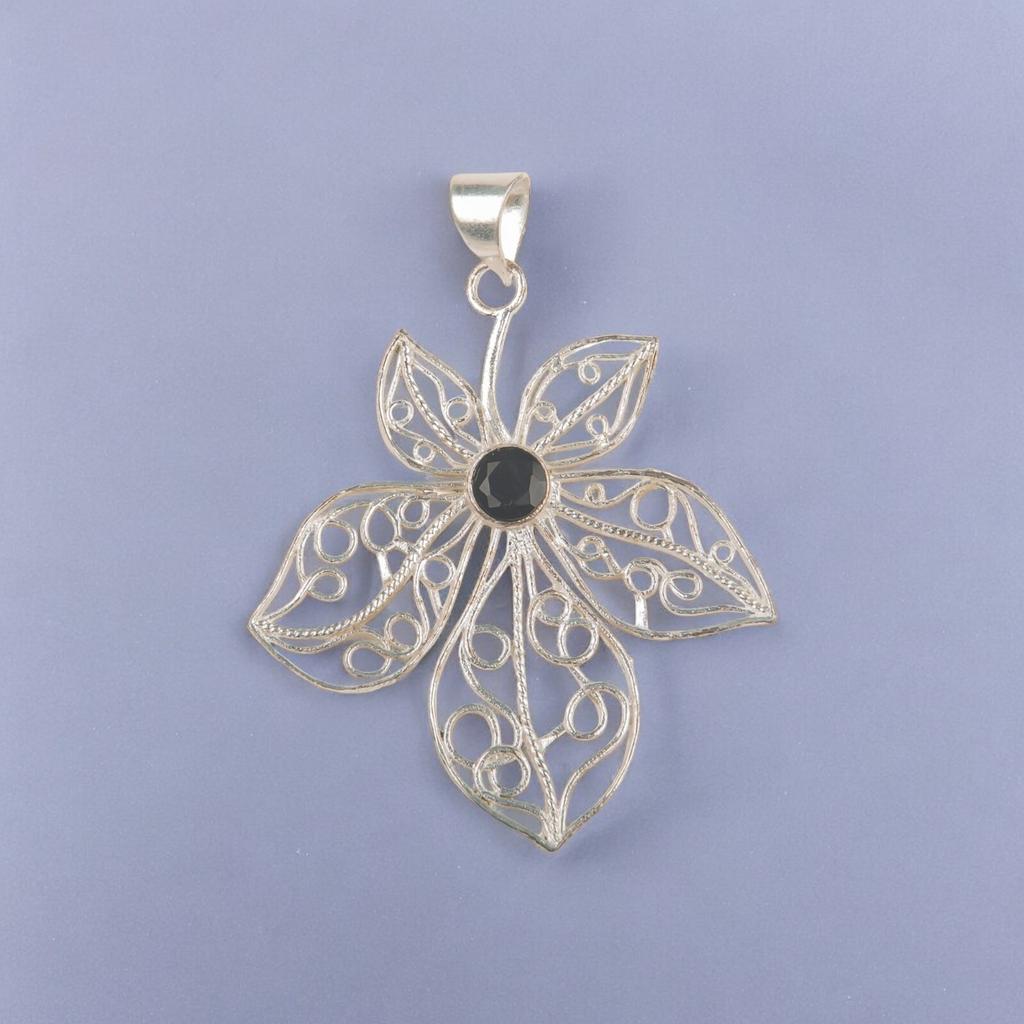 Black Onyx Gemstone 925 Sterling Silver Jewelry Handmade Pendant 2.29" For Gift CP-19-13