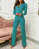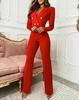Poczuj połączenie stylu i komfortu w tym damskim kombinezonie z długim rękawem, dopasowanym krojem i klapami.. Wykonany z wysokiej jakości włókna poliestrowego, zapewnia miękki i trwały materiał idealny na każdą okazję.. Jednolity wzór dodaje odrobinę wyrafinowania, a długie rękawy sprawiają, że jest idealny na chłodniejszą pogodę.. Ten kombinezon jest idealny dla tych, którzy cenią sobie klasyczny, ale nowoczesny wygląd.
