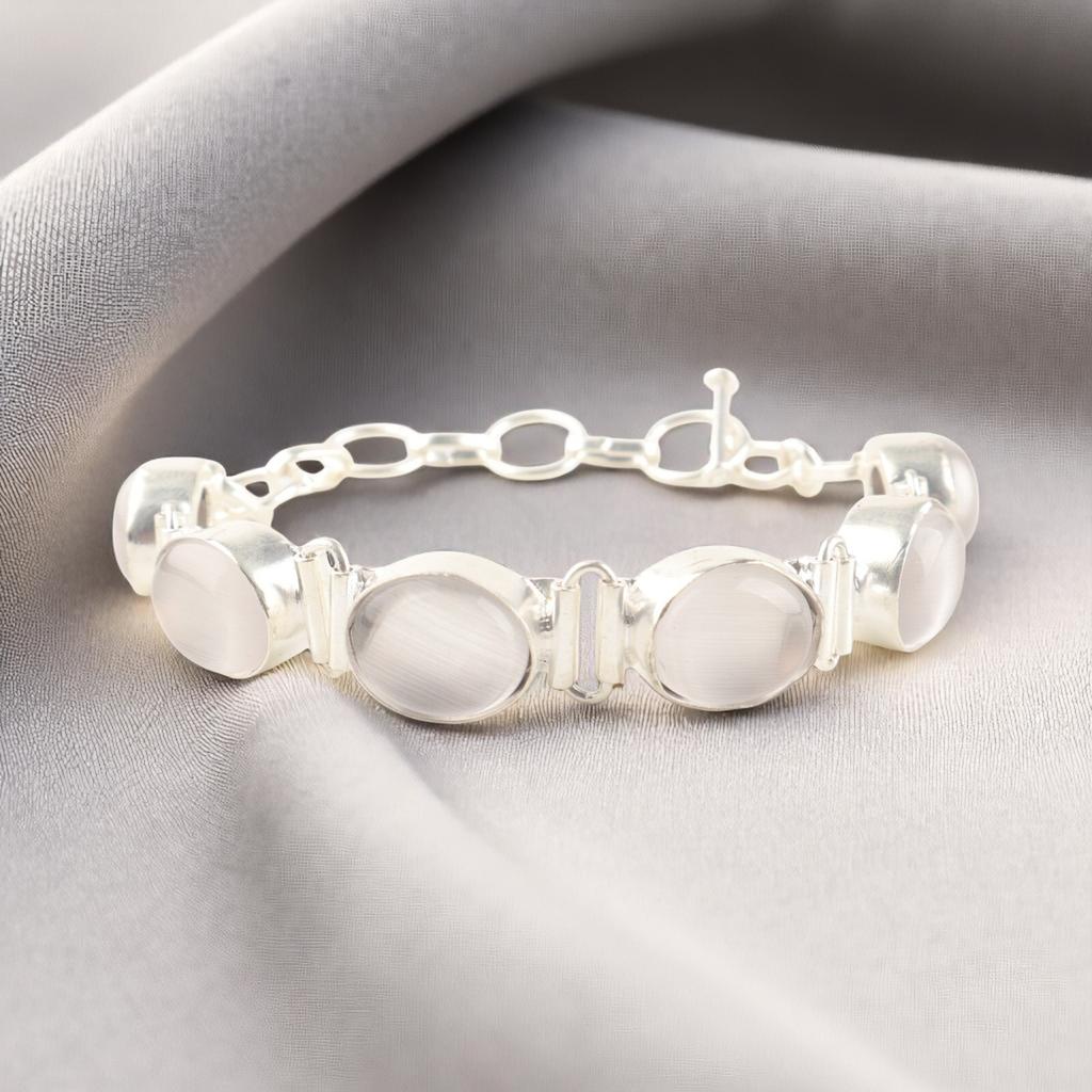 Bransoletka z selenitem, ręcznie robiona, srebrna, 925, 8 cali, dla kobiet