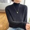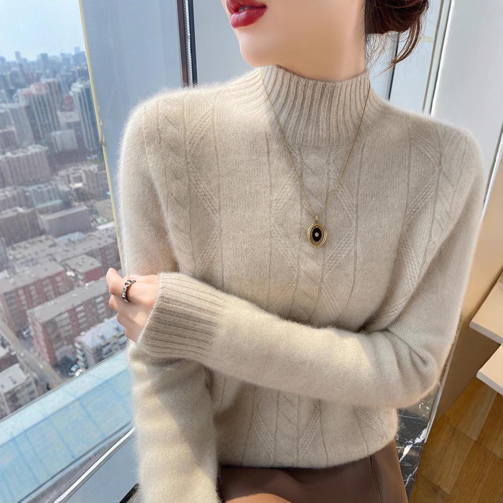 Damski wełniany sweter z golfem o splocie diamentowym - Wyszczuplający, wszechstronny pulower jesienno-zimowy