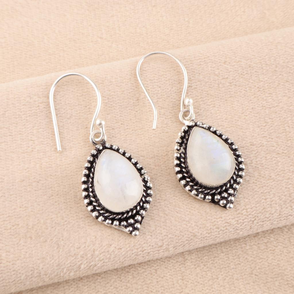 Kamień księżycowy tęczowy Srebro Sterling 925 Ręcznie robiona biżuteria Kolczyki 1,6" EE-164-30