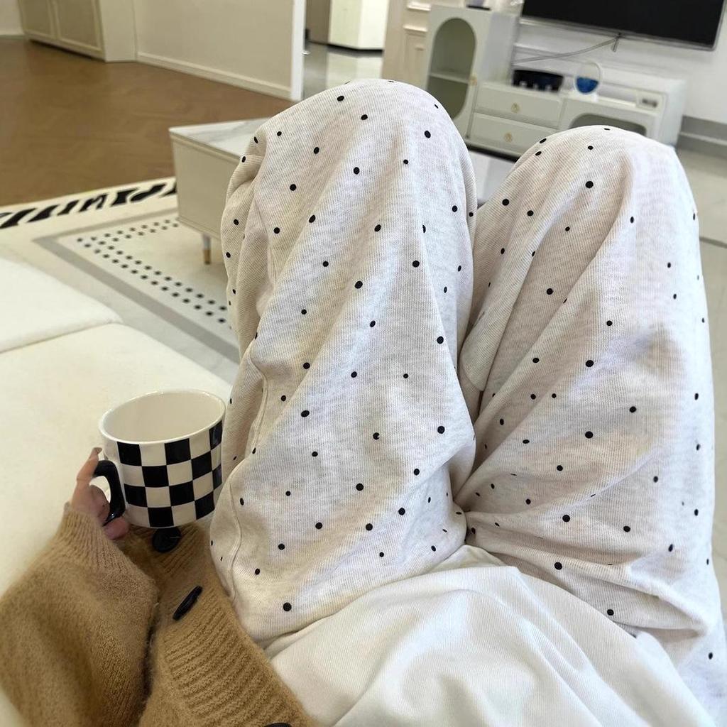 Polka Dot Women's Petite Wide-Leg Glutinous Rice Pants, Autumn/Winter 2024, Loose Plus Velvet, Lazy Style Casual Slimming Trousers.