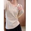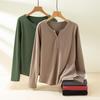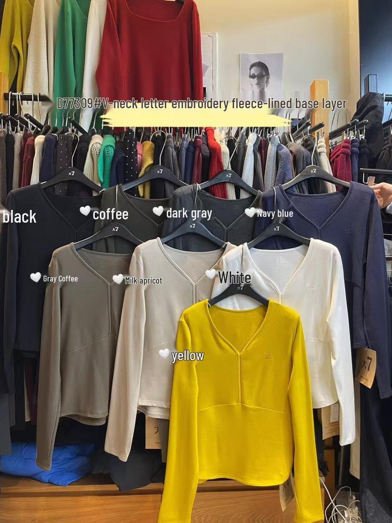 Women's Winter Korean Style V-Neck Fleece-Lined Long Sleeve Plus Size T-Shirt