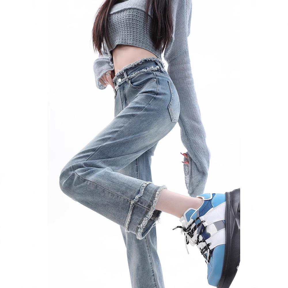 Damskie letnie dżinsy typu cigarette z prostą nogawką i wysokim stanem, w jasnym odcieniu