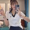 Plus Size Women's V-Neck Polo Shirt - Straight Shoulder, Short Sleeve, Tummy-Covering Slimming Top for Summer 2025