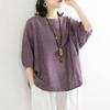 Lato 2025 nowa damska luźna bawełniano-lniana koszulka z krótkim rękawem w jednolitym kolorze, koszulka z krótkim rękawem dla kobiet