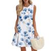 Damska Casualowa Moda Oddychająca Kamizelka z Okrągłym Dekoltem Sukienka w Kwiaty na Wakacje z Kieszeniami