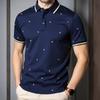 Men's Summer Fashion Casual Floral Short Sleeve T-shirt Color Block Lapel Top