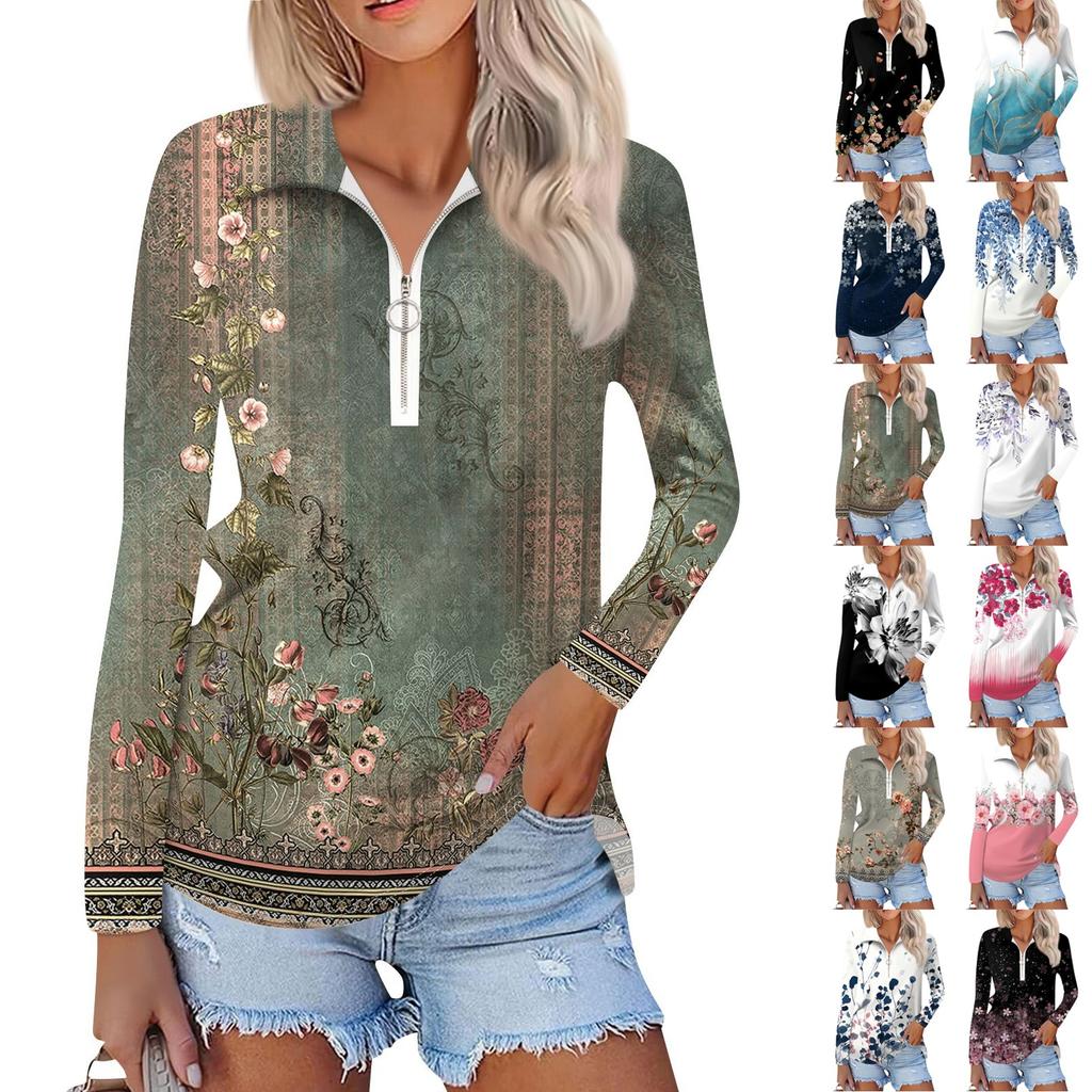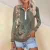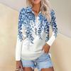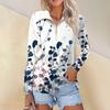 Damska Wiosenna I Modna Codzienna Koszula z Nadrukiem Zapinana na Zamek Dekolt w Serek Długi Rękaw