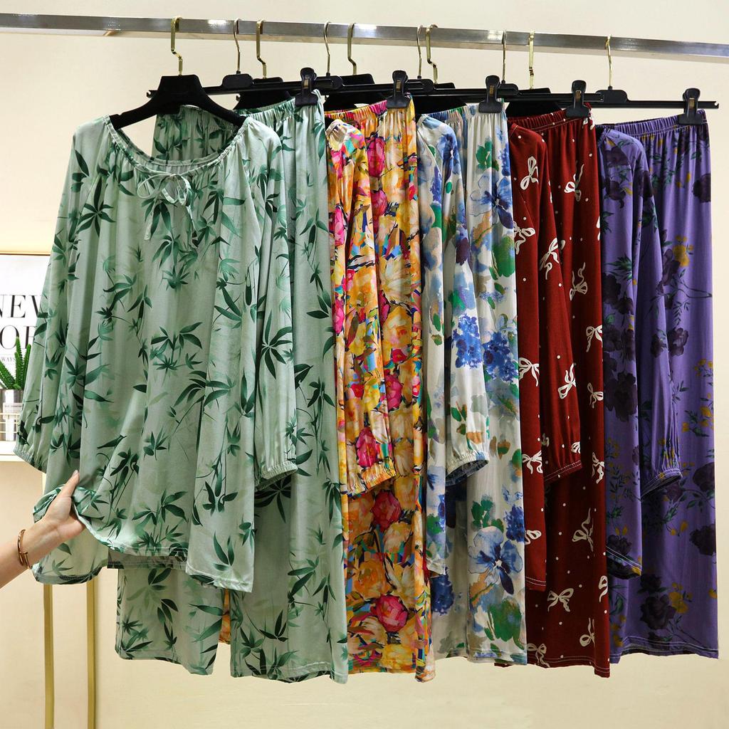 Letnia odzież domowa w kwiaty 2025: Luźne, swobodne spodnie do spania w stylu retro i top w dużym rozmiarze