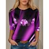 Modne Kwiatowe Czerwone Niebieskie Fioletowe Nadruki Bluzki z Długim Rękawem Świąteczny Weekend Okrągły Dekolt Regularny Krój Wiosna Damski T-shirt