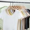 Ten damski T-shirt z krótkim rękawem i okrągłym dekoltem typu francuskiego ma klasyczny okrągły dekolt i krótkie rękawy, oferując ponadczasowy i wszechstronny wygląd.. Wykonane z wysokiej jakości bawełny, zapewnia miękkość i wygodę, idealne do noszenia na co dzień.. Projekt charakteryzuje się prostymi ramionami i solidnym wzorem, co czyni go doskonałym dodatkiem do każdej garderoby.