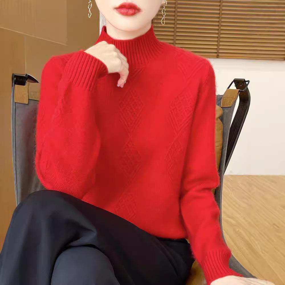 Wrap yourself in cozy elegance with this thick knit pullover, designed for the cooler months of autumn and winter. Crafted from premium wool, it features a sophisticated diamond pattern and a semi-high neck, offering both warmth and style. The long sleeves provide additional coverage, making it an ideal choice for chilly days. Experience the perfect blend of comfort and fashion with this must-have wardrobe staple.