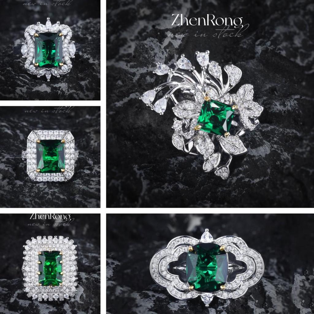 Pierścionek z symulowanym szmaragdem i zielonym diamentem w szlifie princess w dwukolorowym złotym ustawieniu