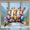 Three Rabbits Holding Colorful Eggs Hanging Decoration Hanging Pendant Wind Chime Suncatcher Home Window Ornament Garden Decor