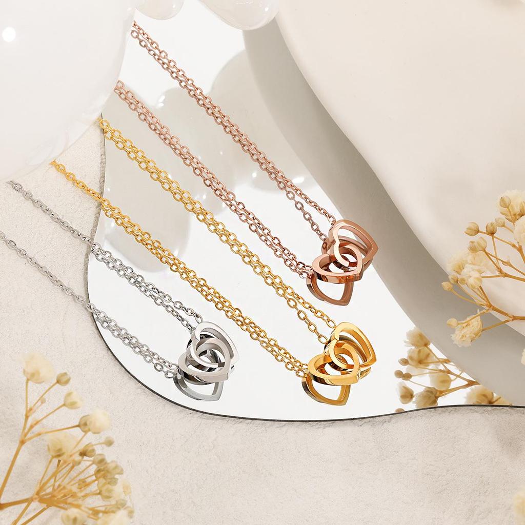 Łańcuszek na obojczyk w kształcie serca w stylu koreańskim: Wszechstronny naszyjnik ze stali tytanowej z podwójnym pierścieniem