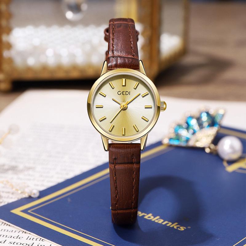 Gedi Elegancki Zegarek Damski z Małą Tarczą - Wykwintny Design z Skórzanym Paskiem dla Studentek